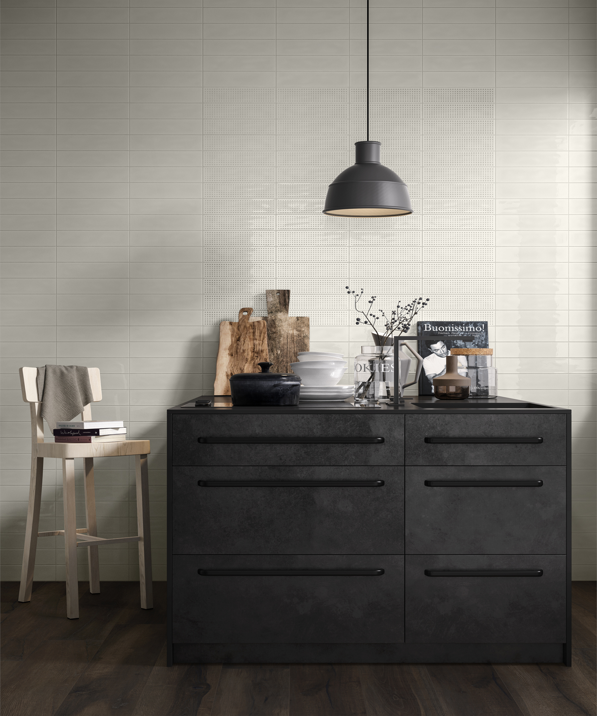 Jonty Cook, Product Manager for Marquis Collection also agrees: 'to make a small kitchen look bigger, we recommend using large format tiles allowing for minimal grout lines to achieve a contemporary finish - giving the illusion of a larger space. We also recommend using contrasting tiles for a kitchen backsplash idea to give a focal point at the far end of the room'.