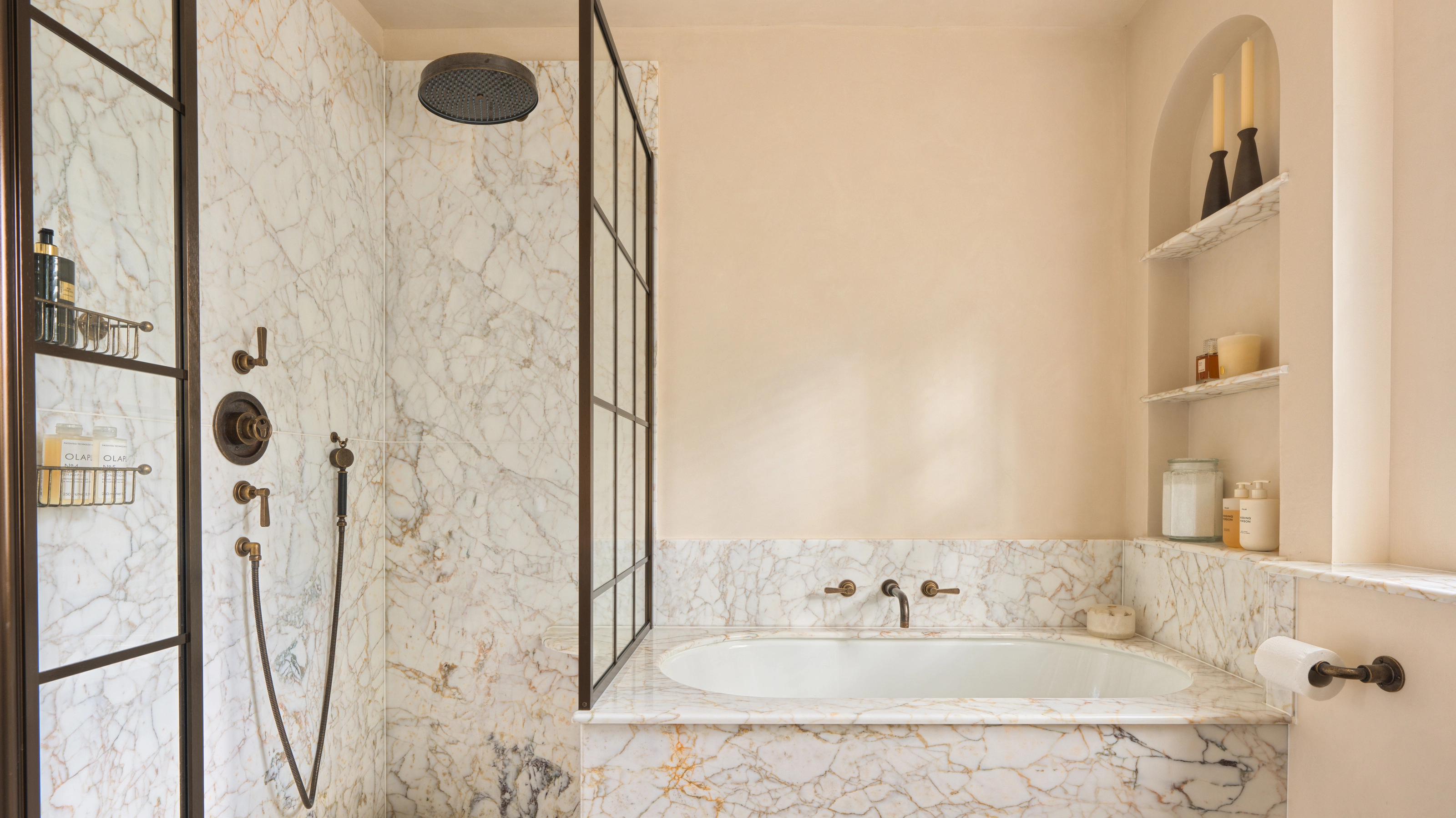 Keep your shower niche clutter-free for visually calm bathroom aesthetic