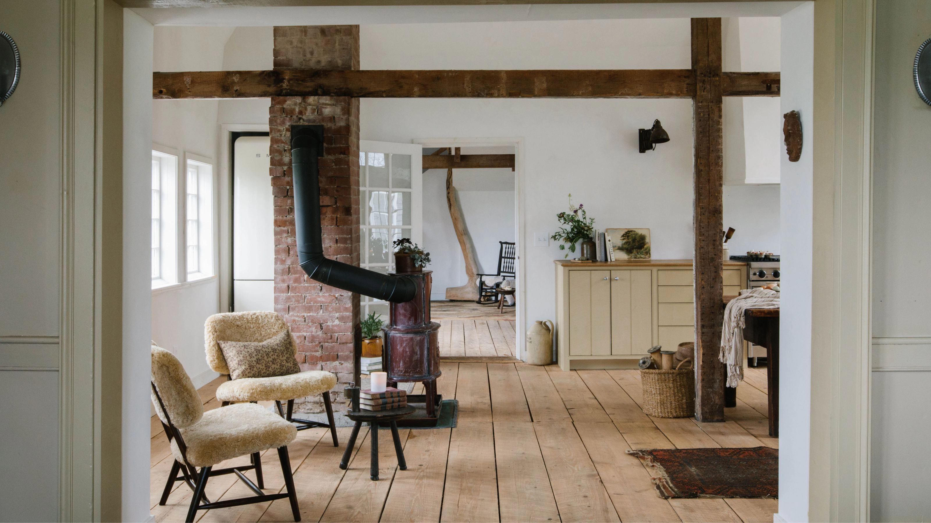 First come the structural features, the foundations. "Exposed timber beams, plank floors, simple millwork, paneled doors, and a strong sense of utility in the way rooms are laid out and used," describes Blair Moore. "There’s usually an inherent modesty to the architecture, but also a richness that comes from age, wear, and craftsmanship that defines traditional farmhouse style."