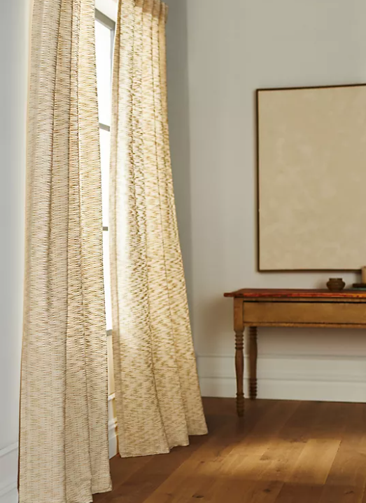 The combination of cozy boucle upholstery with sleek antique brass is incredibly striking. Consider placing this statement Anthropologie furniture piece in an entryway, or anywhere with maximum visibility.