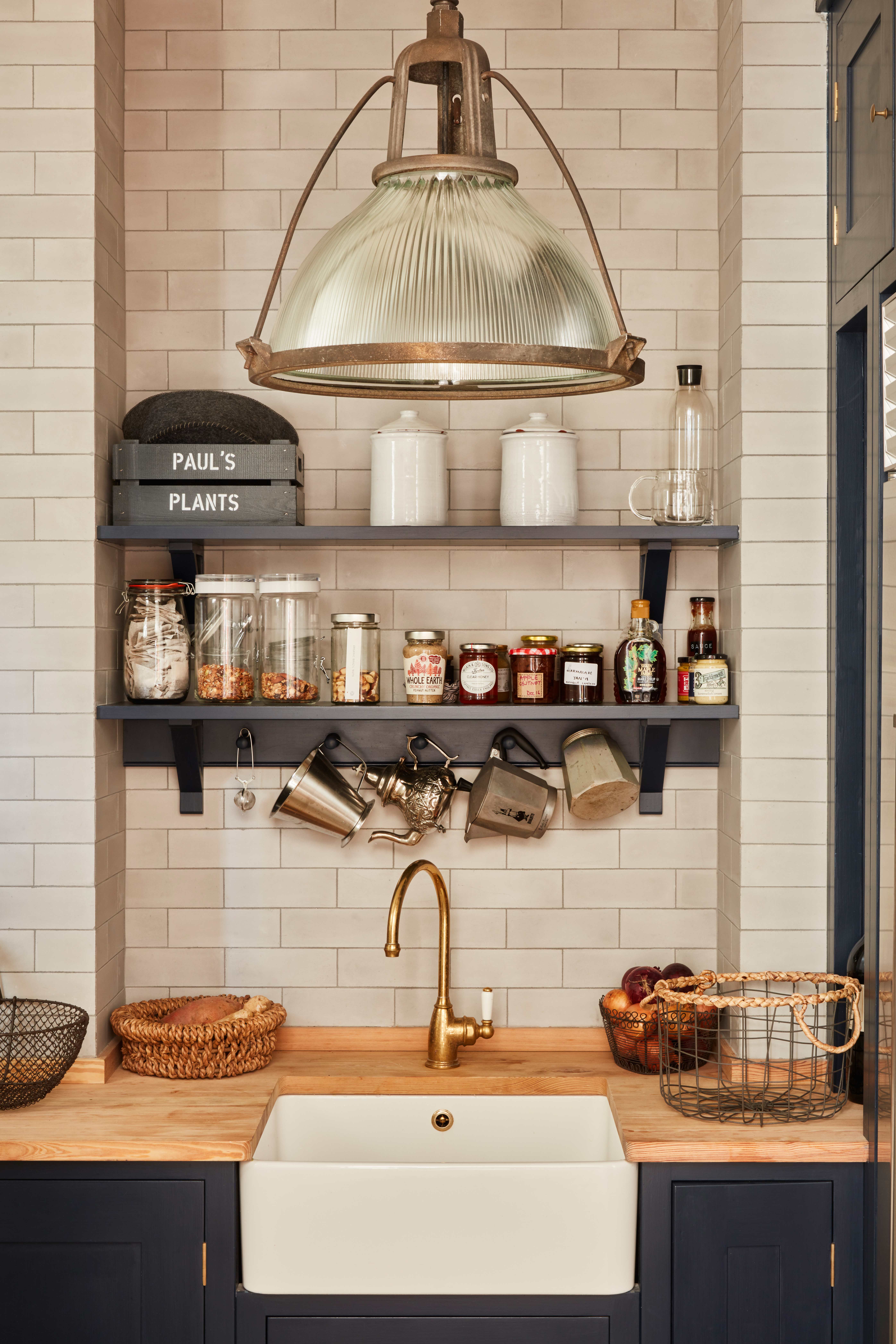 The lights were sourced from a warehouse and give the kitchen that industrial, taw edge that can be found throughout the rest of the home.
