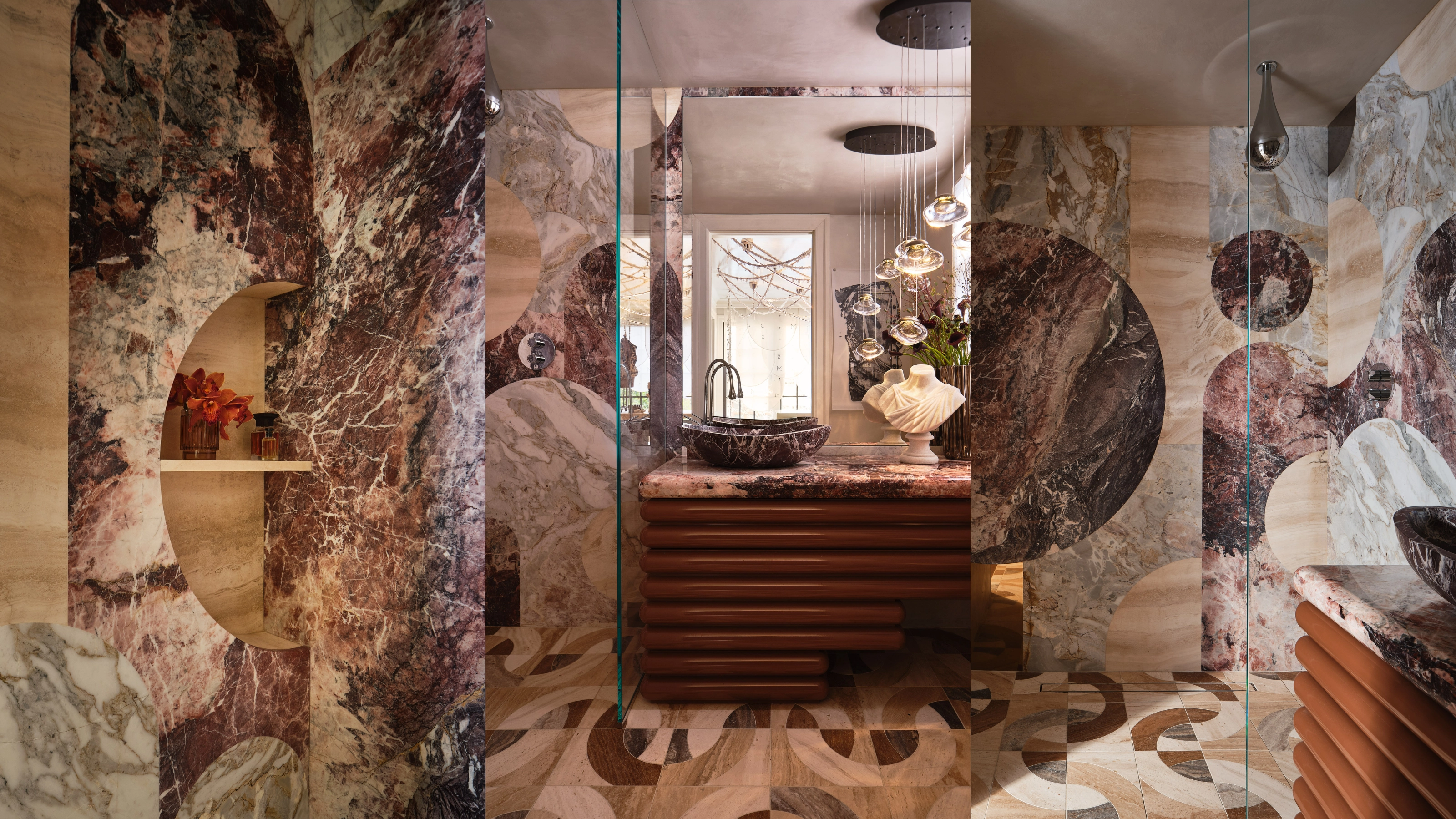 It may sound strange to compare a bathroom to a baroque masterpiece, but looking at the curving, marble forms decorating the walls and floors of this small bathroom, they don't seem to be a million miles apart. Designer Sabah Mansoor, of Sabah Mansoor Design, gives marble the same gentle, tactile treatment offered within the Italian artists' greatest sculptural feats.