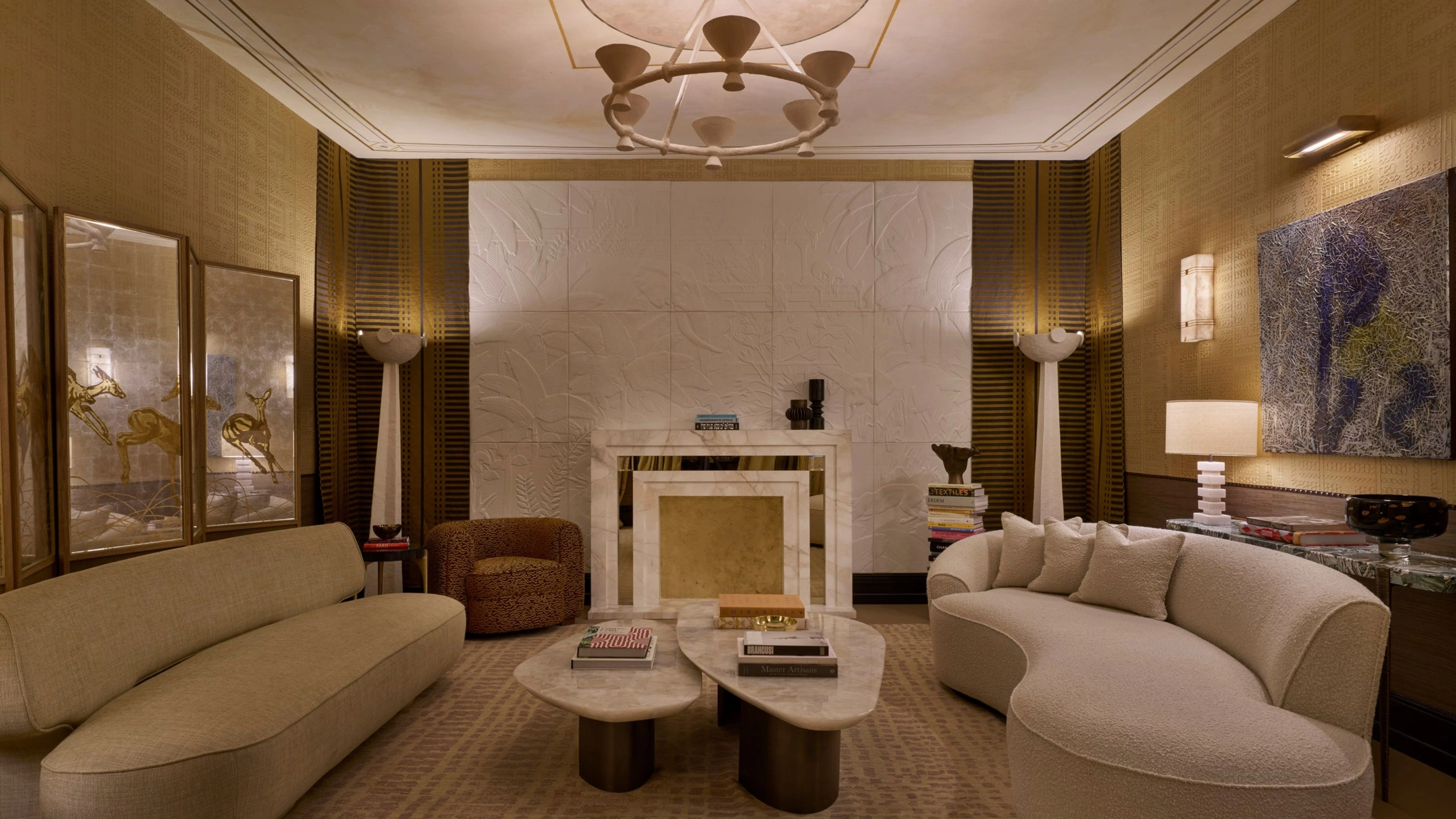 Rather than sticking to safe, neutral hues, the usual suspects, the London-based creative suggests daring with warming tones, radiant blues, and layered furnishings and accessories.