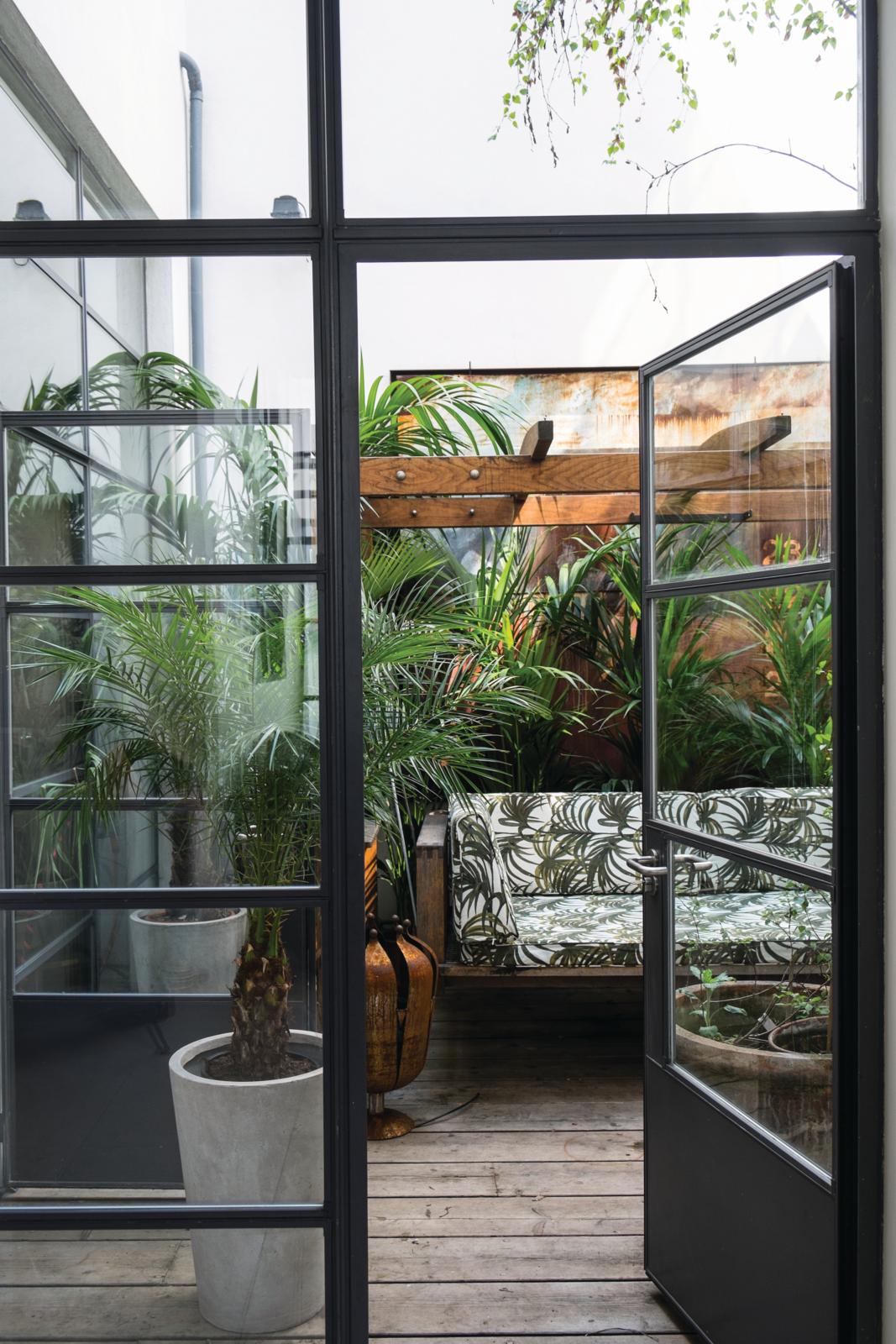 Using a botanical or palm print for your outdoor seating cushions is a fun way to connect interior and exterior style. Especially if you repeat it with the real deal.
