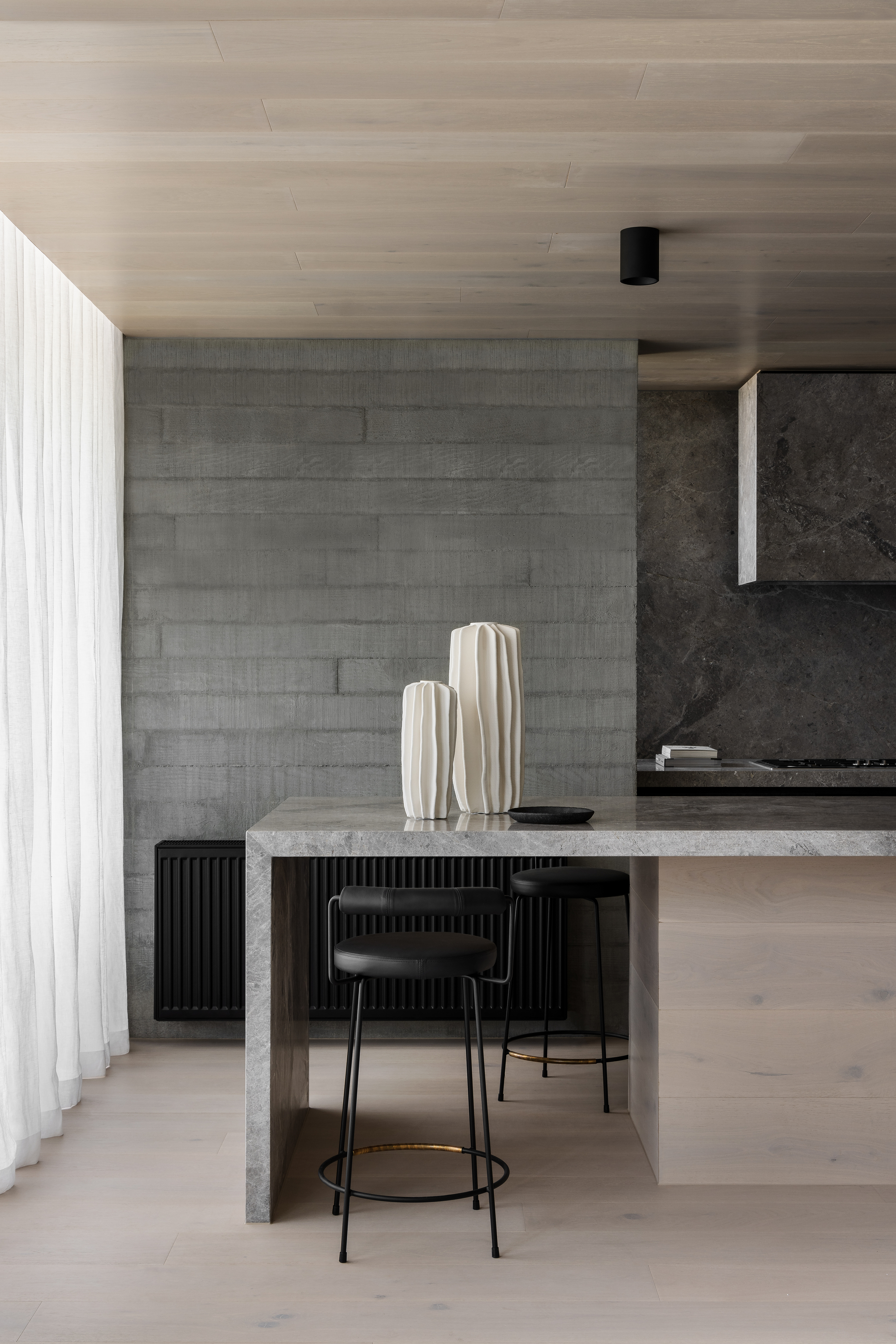 Pick the stool that matches your kitchen color scheme. I love how these wooden chairs work with the feel of this minimalist kitchen by Los Angeles-based Est Collective, but black powder-coated steel might work better for a more modern, Italian-style kitchen. The odd number rule works with stools too, go for three or five stools to aid the aesthetic.