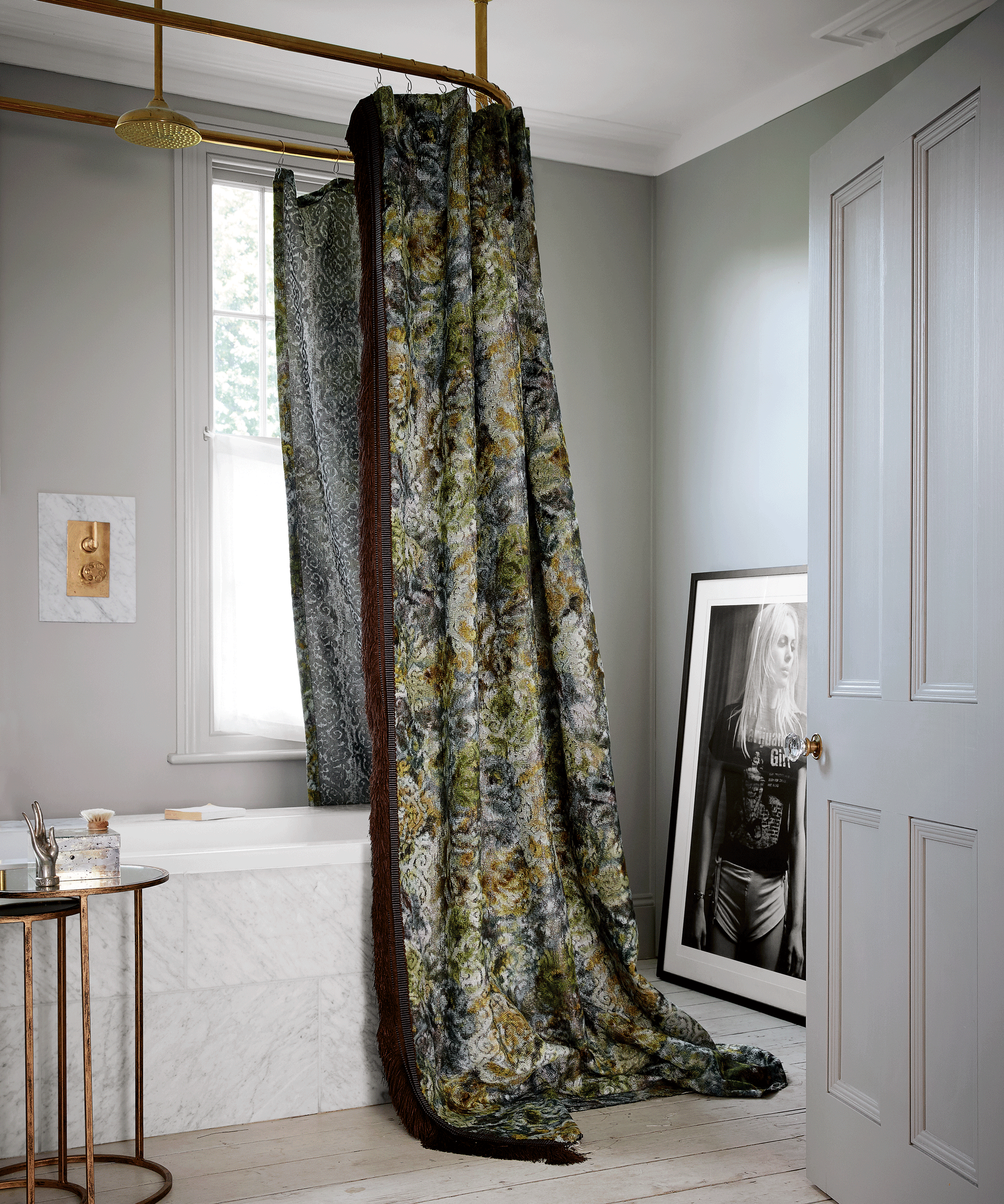‘We want to turn every room into a living masterpiece,’ says Jamie Watkins,co-founder of Divine Savages. 'Our playful shower curtains are great for injecting bold pattern and brave color to an otherwise practical space. Zsa Zsa, our glorious print of dancing ostrich showgirls, adds instant decadence to this traditional cast iron bath whilst beautifully complementing the colors of the room scheme, resulting in a luxuriously unexpected design moment.’
