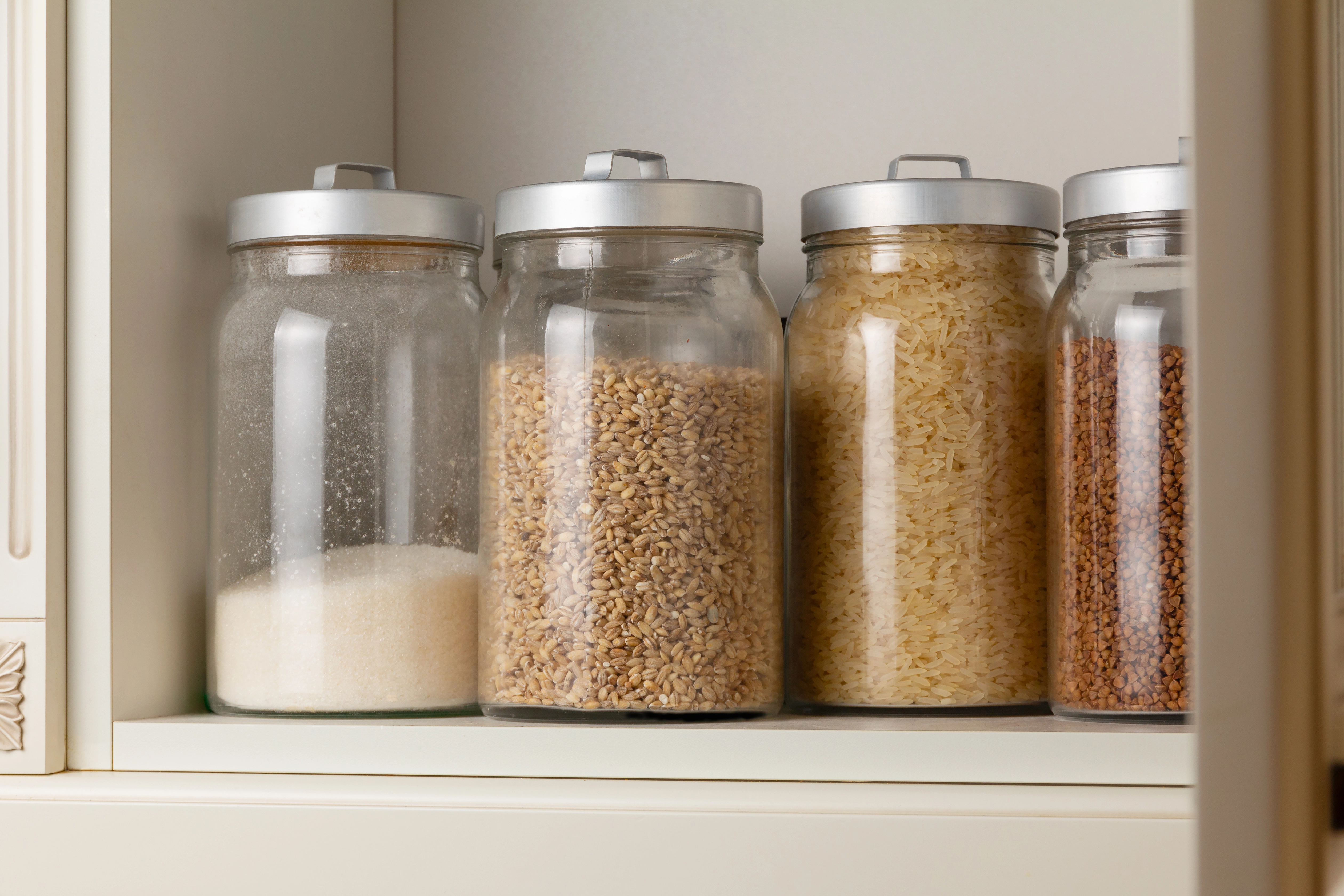 For the finishing touches to her mini pantry, Medina then wallpapered the backing with a simple leaf design to add some depth and applied sheer linen curtains for a cleaner look when not in use. Decanting her dry foods into uniform glass containers gives it that oh-so-satisfying level of pantry organization that we all crave.