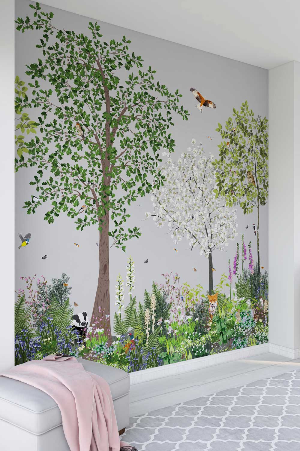 The leaves may be turning outside, but with this lovely wildlife wallpaper by independent designer, Lorna Syson, they will stay forever green inside.