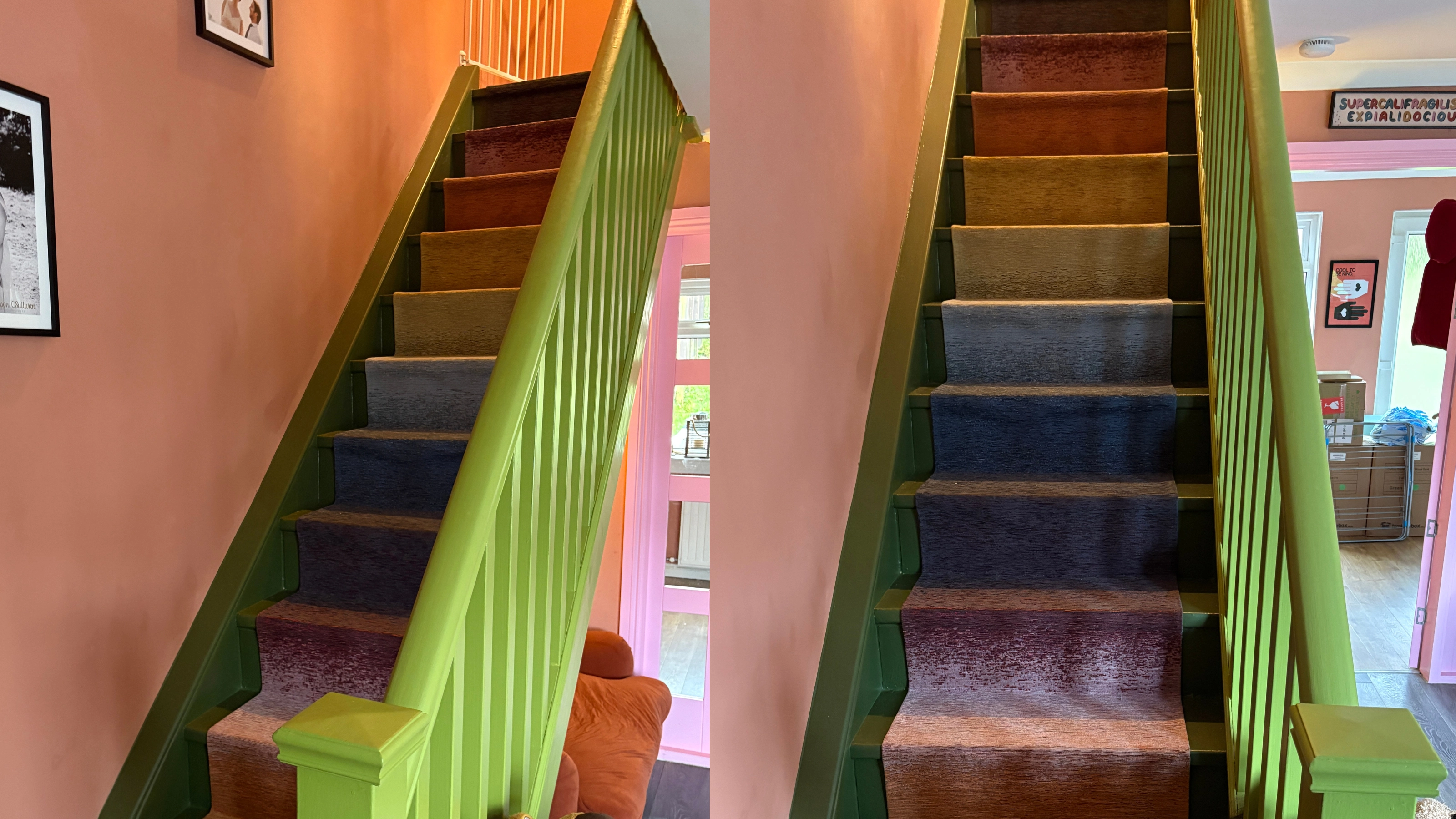This Ombre Stair Runner Is Having a Viral Moment — It Looks Bespoke, but It's Actually an Affordable, Off-the-Shelf Way to Do the Rainbow Staircase Trend