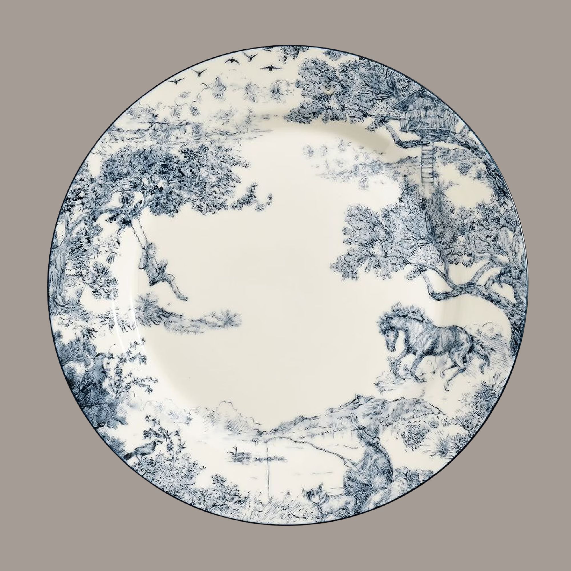 'Wait, is that Dior?' I thought to myself as I scrolled past Pottery Barn's toile dinnerware collection. And while the fashion house may have made the pattern popular more recently, it certainly doesn't own it. In fact, its origins date back to the eighteenth century in France. So, while you could spend £110 on one plate to get the look... £59 for a dinnerware set of four certainly feels like an enticing option, too.