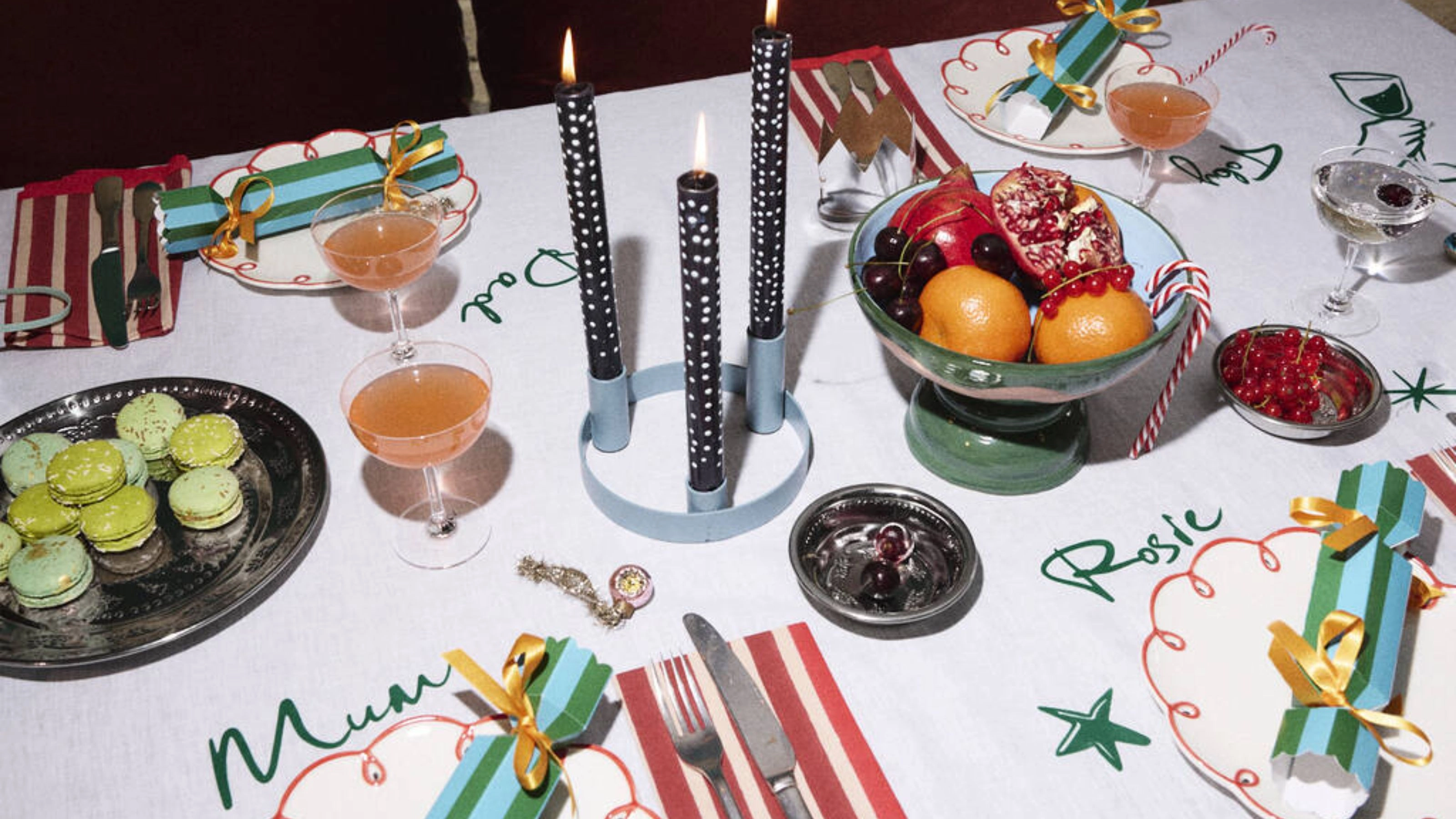 Beyond the table decor we see year after year — think foliage centerpieces and party-ready silverware — there are many more creative ways to set the festive scene with a playful and personal touch, not least with hand-drawn place settings.