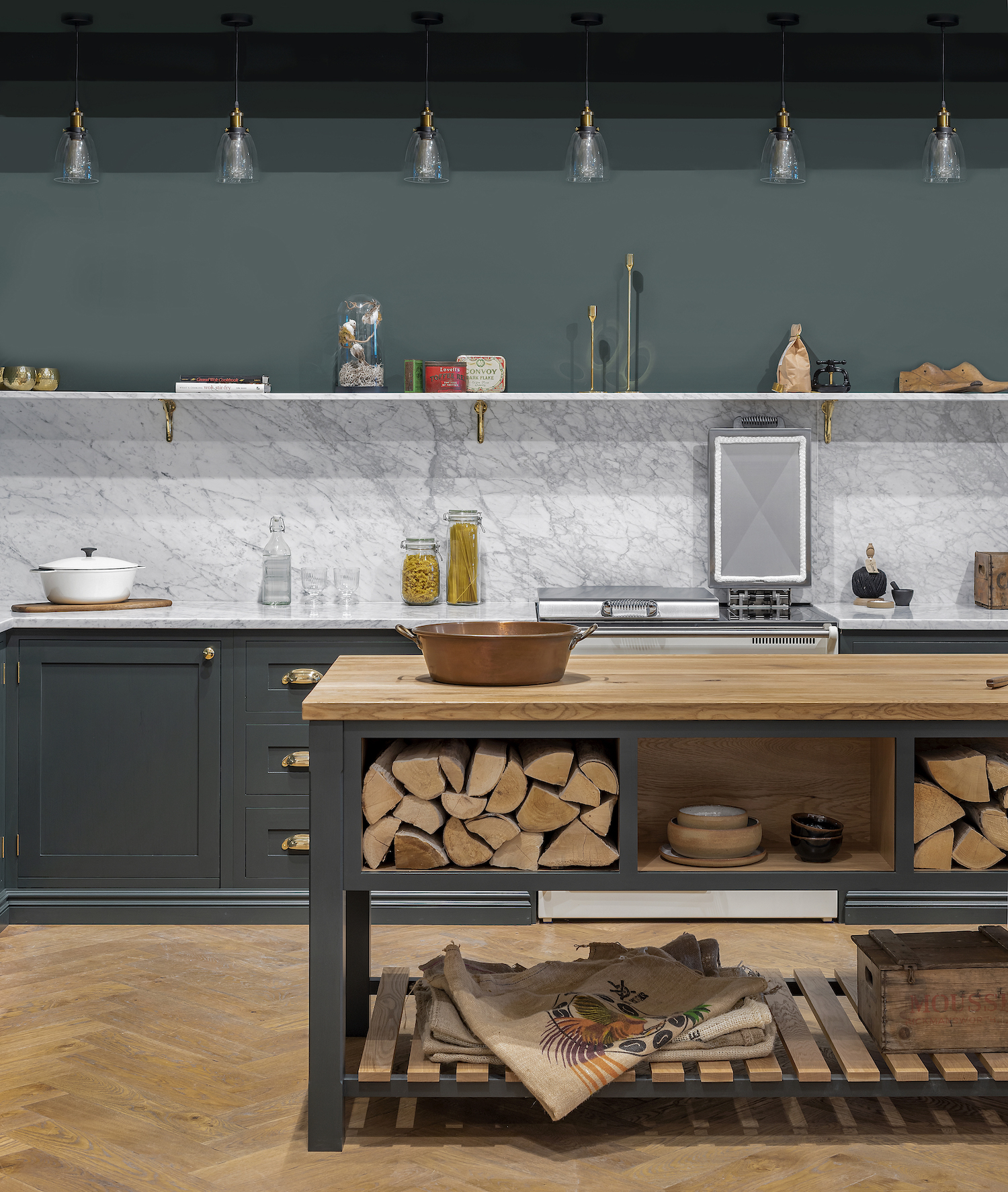Alex continues: “In addition to valuable countertop space, an island can provide ample storage. Large cupboards or pan drawers within a central island are extremely useful for storing bulky and heavy items or those used most frequently for cooking and food preparation. They are also a popular choice for housing appliances such as dishwashers or wine fridges. They also provide a great base for personal touches such as open shelving, whether this is just on one side or spread across the whole island, allowing for the display of cookbooks and other decorative pieces.”