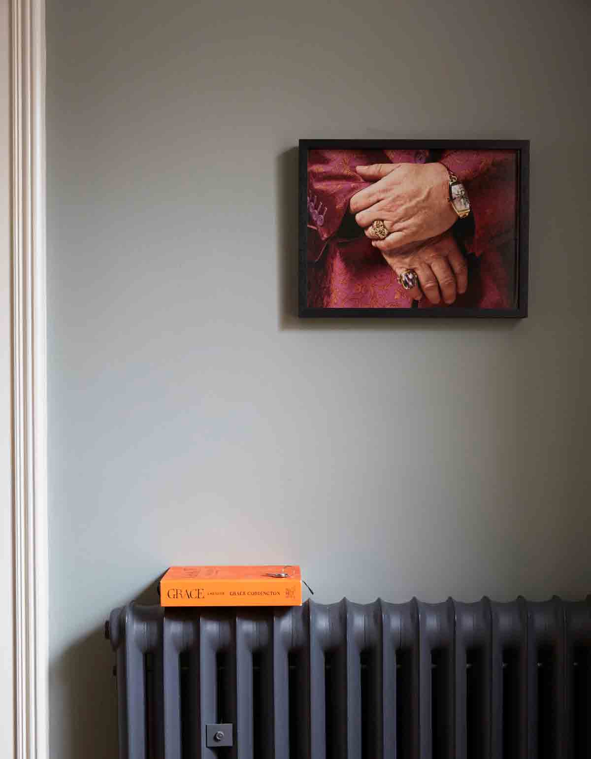 A muted, greyish tone from Farrow & Ball was used as a compromise on wished-for pink walls. It’s a nice soft shade that blends with the rest of the house.