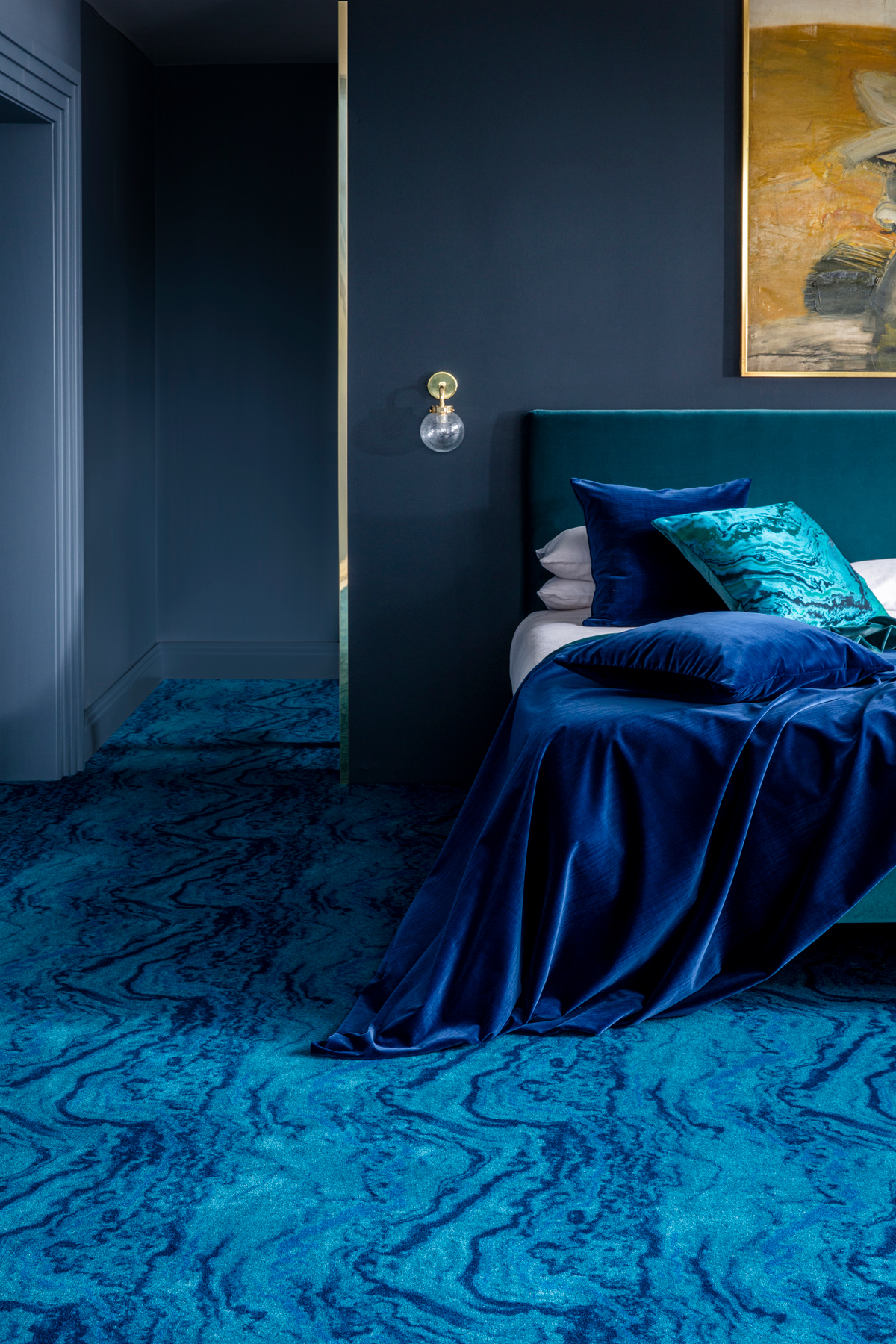 Style Library (home to Zoffany, Sanderson, Morris & Co, et al) and Alternative Flooring's Boutique carpet collection is inspired by five signature designs from Zoffany's fabric range. Should you be torn between a carpet and a stone floor, Serpentine in Malachite translates the wavy quality of marble onto a hand-tufted pile.
