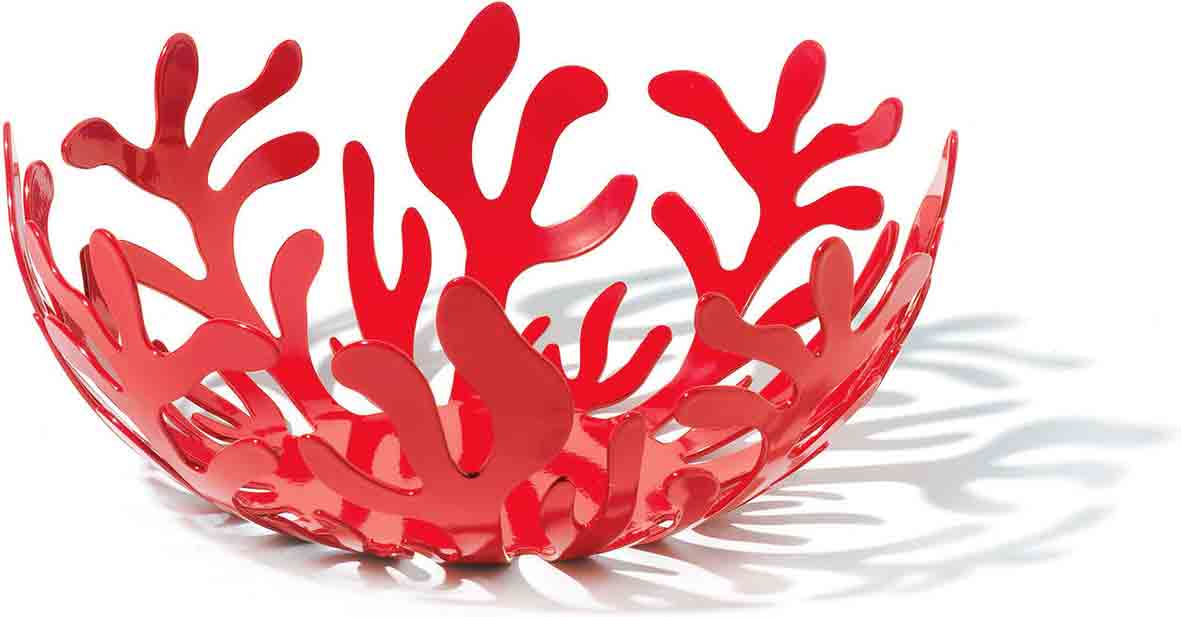 A seaweed-inspired fruit bowl makes an on-trend scarlet centre piece.