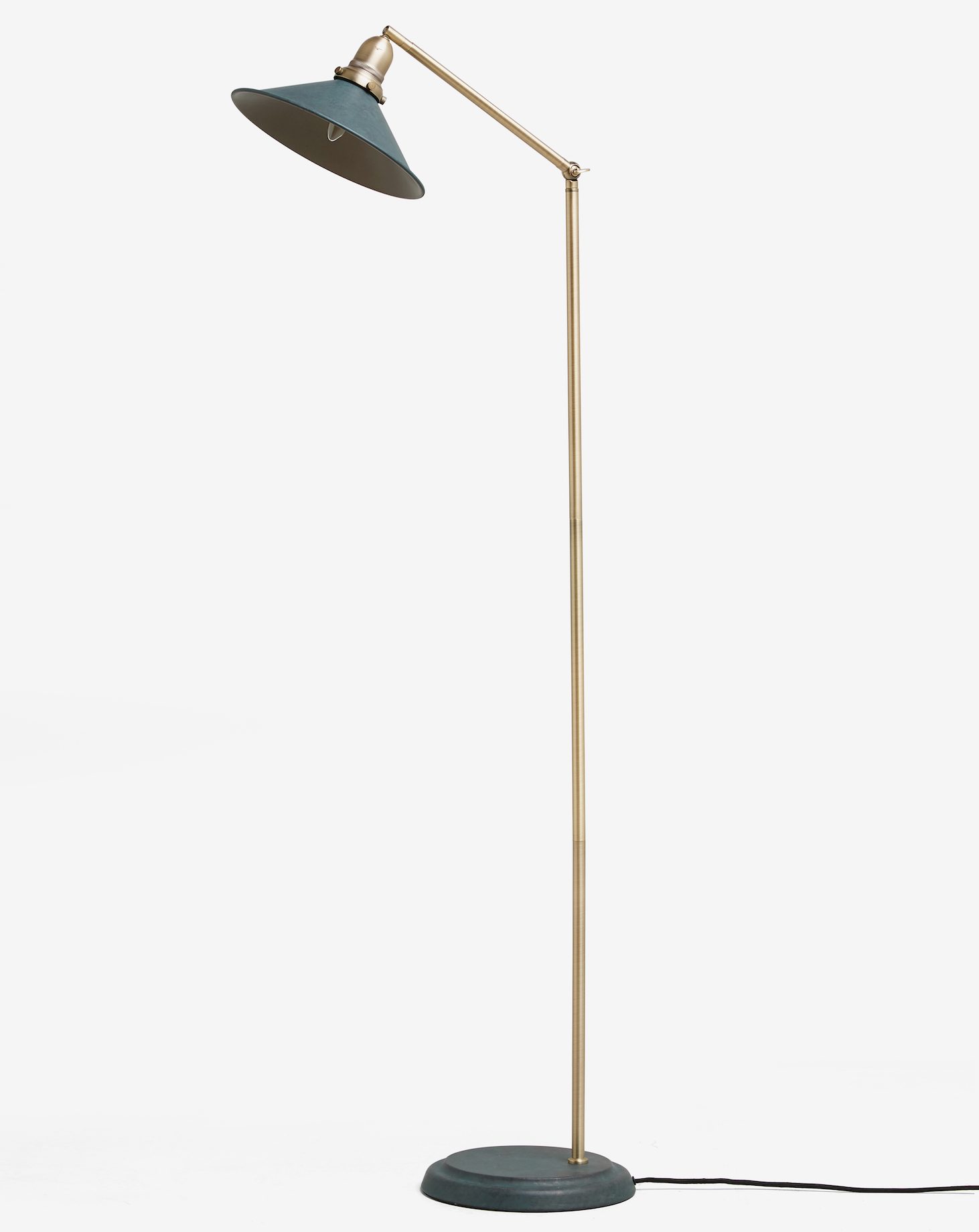 We love this chic, simple floor lamp design with it's conical lampshade and slim brass frame...