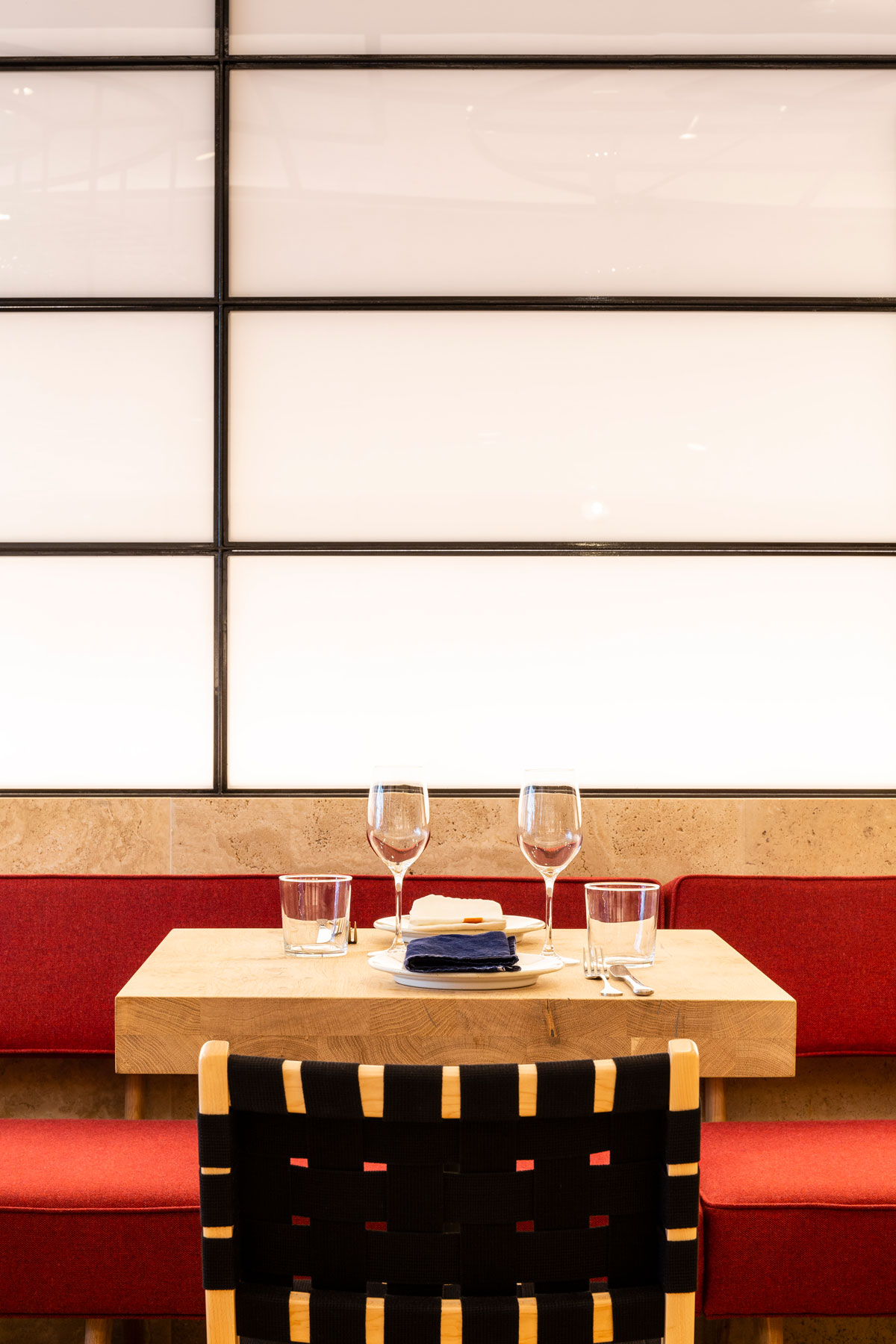 The interior also includes 40s-inspired sofasthat designer Alex Meitlis specially designed for ROVI, alongside carefully sourced vintage lamps and design classics.