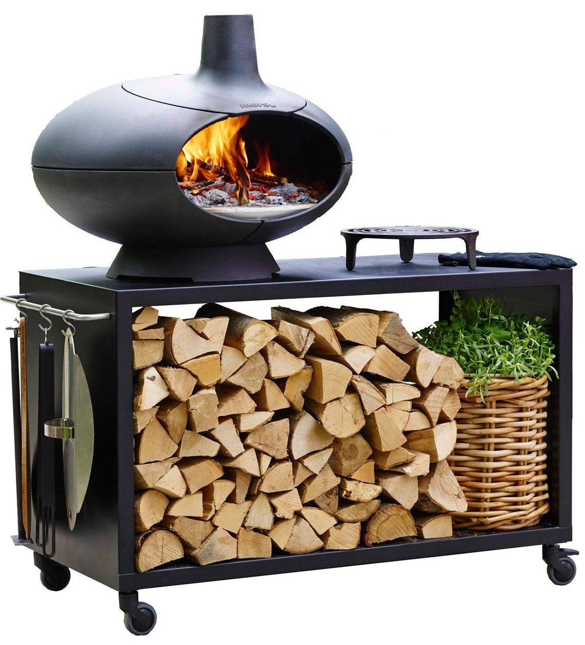 Don’t want to be stuck in the kitchen? Move it outside with this grill and pizza oven on wheels.